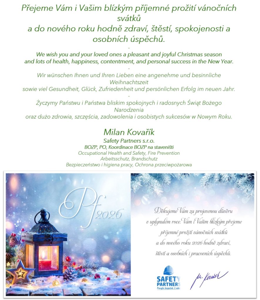 Přejeme Vám i Vašim blízkým příjemné prožití vánočních svátků a do nového roku hodně zdraví, štěstí, spokojenosti a osobních úspěchů.